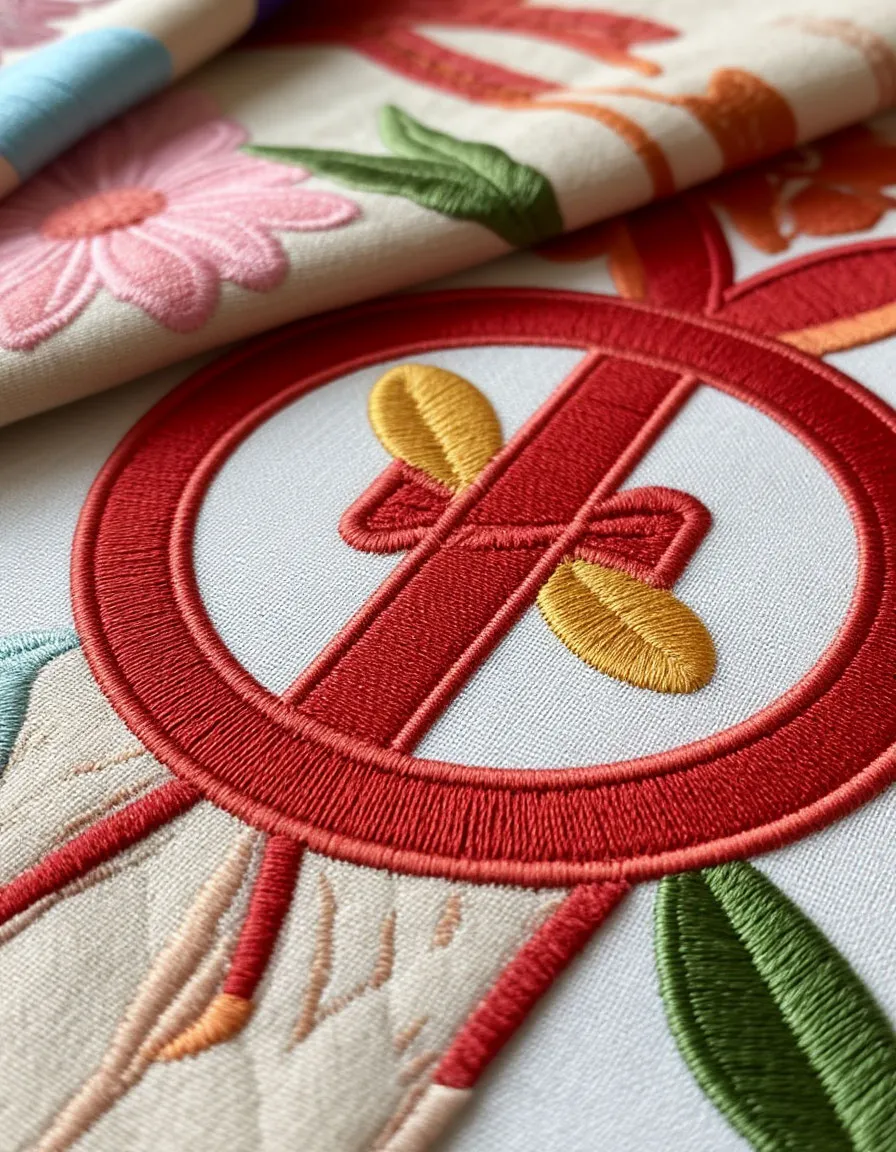 Классическая машинная вышивка нитями. Четкие контуры, премиальный вид. Для делового стиля.